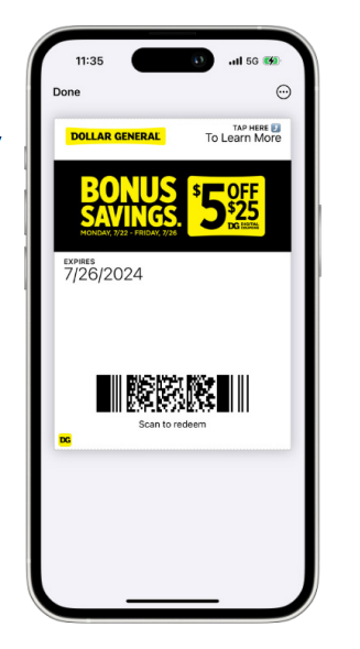 Since implementing digital wallet coupons, Dollar General has seen a significant improvement in customer engagement. Push notifications and reminders about new and expiring coupons have increased redemption rates and encouraged more frequent customer visits. The convenience of having coupons readily accessible on their smartphones has made savings more accessible, boosting customer loyalty and driving repeat business.